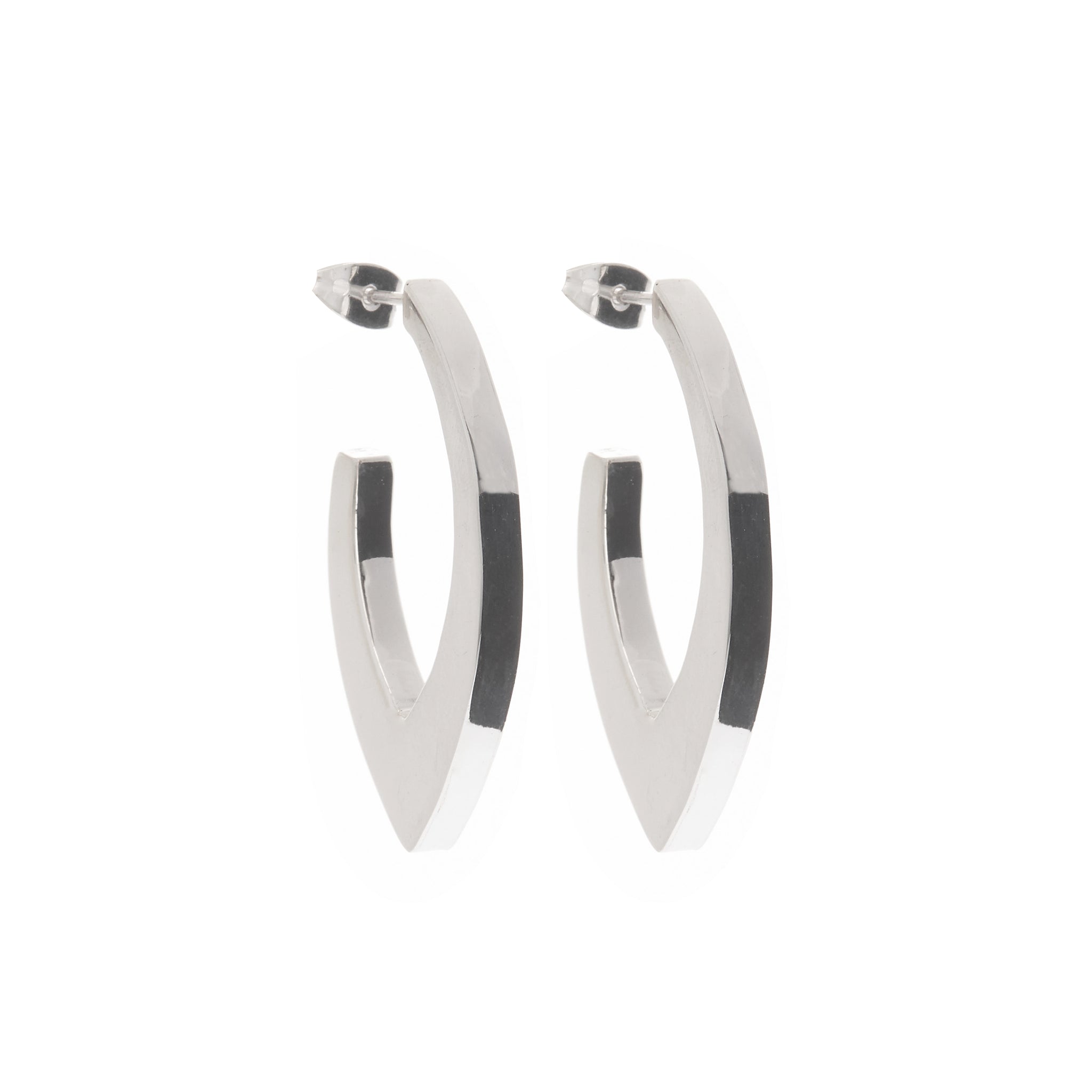all silver pointy hoops with square edge