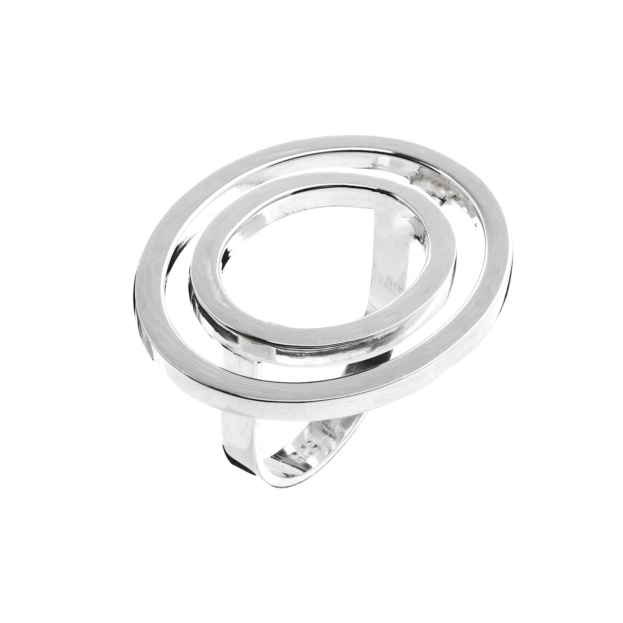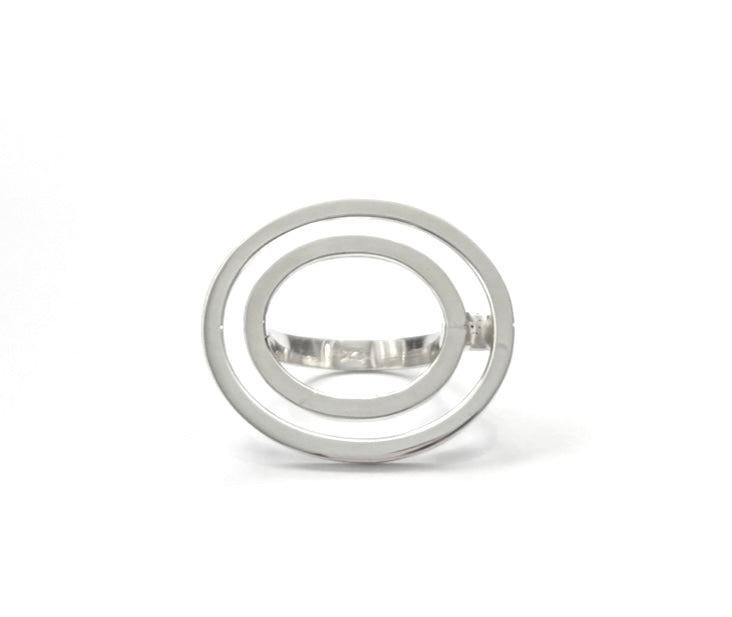 all silver horizontal double oval ring
