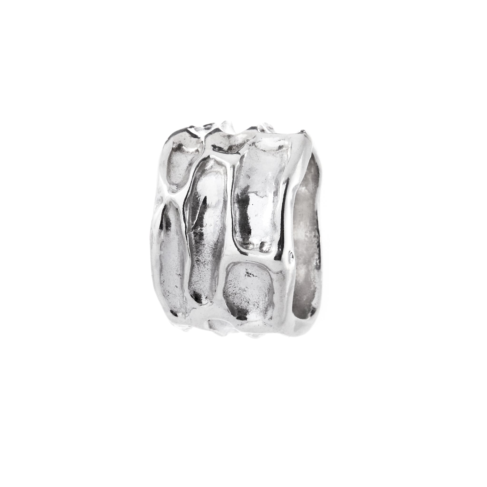 all silver organic, solid chunky band, textured indented sections