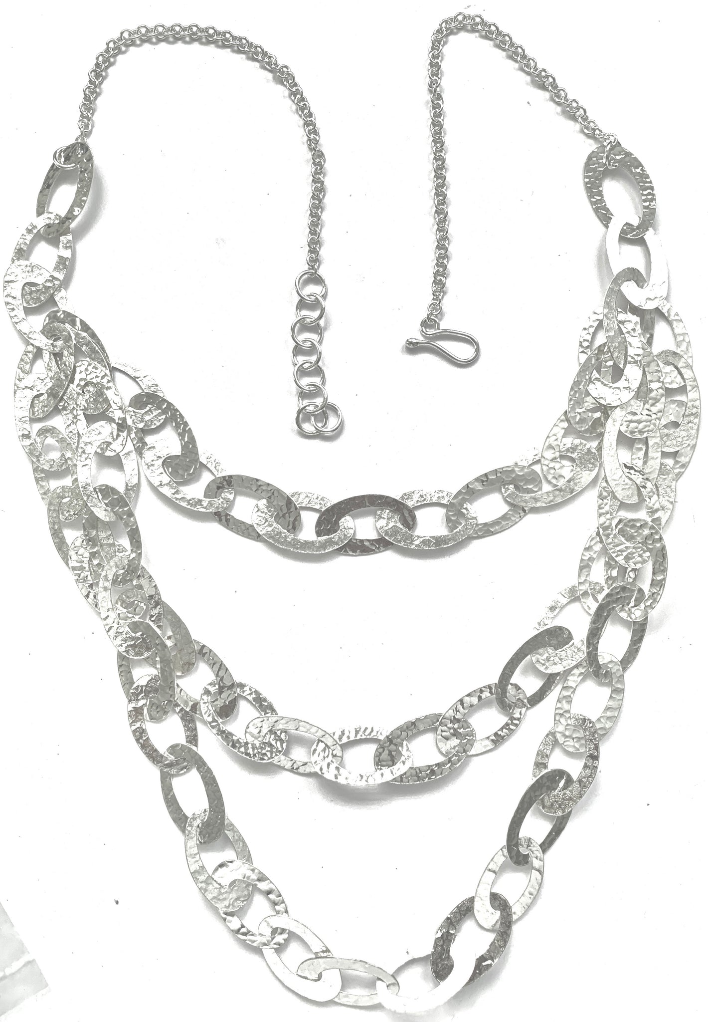 all silver chain with 3x levels of hammered ovals, bar through ring clasp